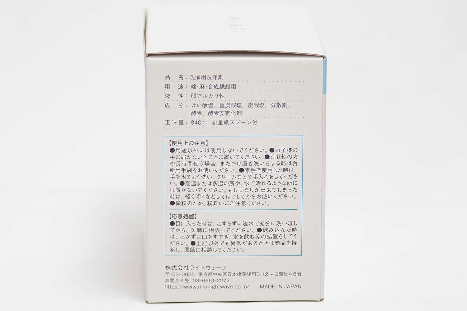 成分:炭酸塩、重炭酸塩、けい酸塩、硫酸塩、分散剤、酵素、酵素安定化剤